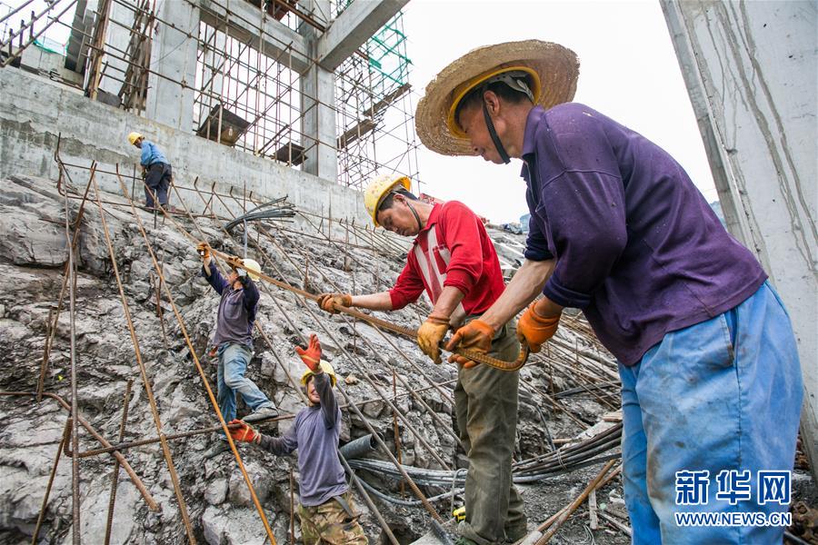 6月24日,工人在位于贵州省毕节市七星关区和纳雍县交界处的夹岩水利枢纽工程大坝上劳作。 夹岩水利枢纽工程位于贵州省毕节市七星关区与纳雍县的界河上,是“十三五”期间国家分步建设的172项重大水利工程之一,于2015年开工建设。目前夹岩水利枢纽及黔西北供水工程水源工程主体即将完成,现已进入后续建设阶段,工人们正抓紧时间抢工期,力争年底具备下闸蓄水条件。 新华社发(罗大富 摄)