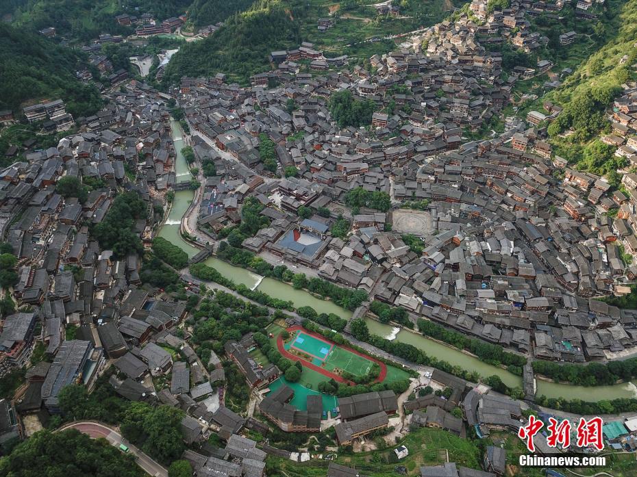 6月25日,航拍贵州雷山西江千户苗寨。西江千户苗寨位于贵州省黔东南苗族侗族自治州雷山县,由10余个依山而建的自然村寨相连成片,是目前世界上最大的苗族聚居地。中新社记者 瞿宏伦 摄