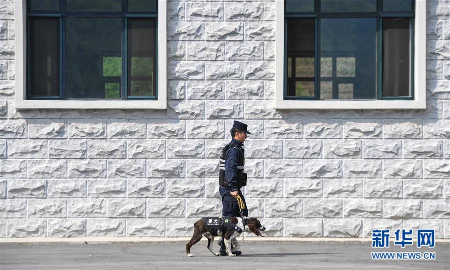 缉毒犬“黑飒”和训导员江枫在训练中(6月22日摄)。 新华社记者 许畅 摄