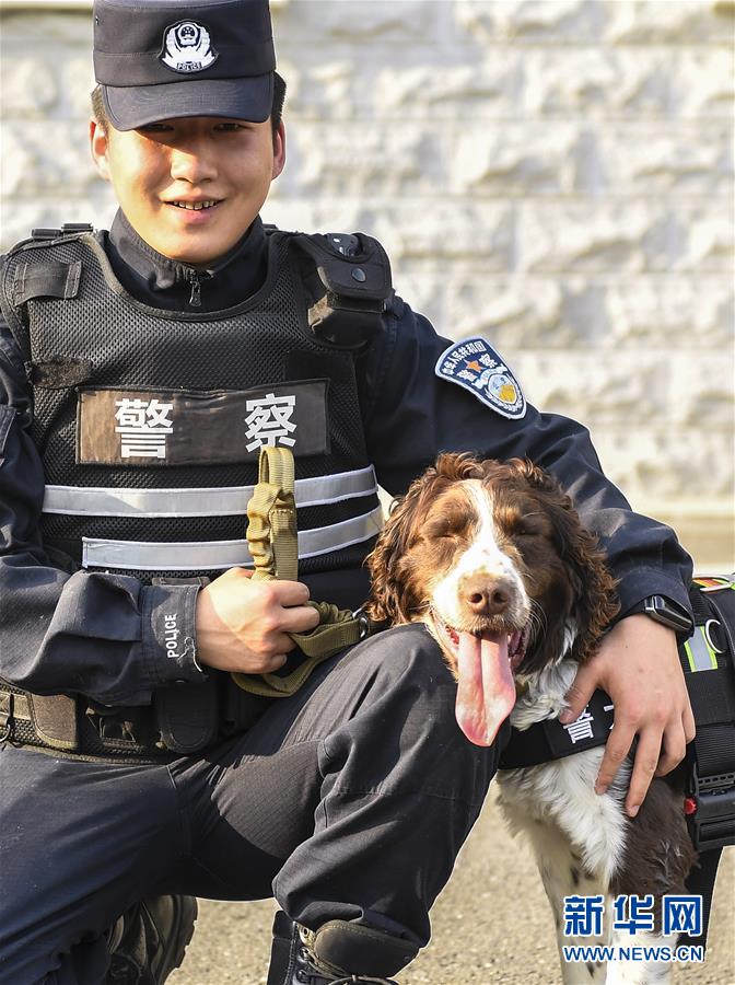 这是缉毒犬“黑飒”和训导员江枫的合影(6月22日摄)。 新华社记者 许畅 摄