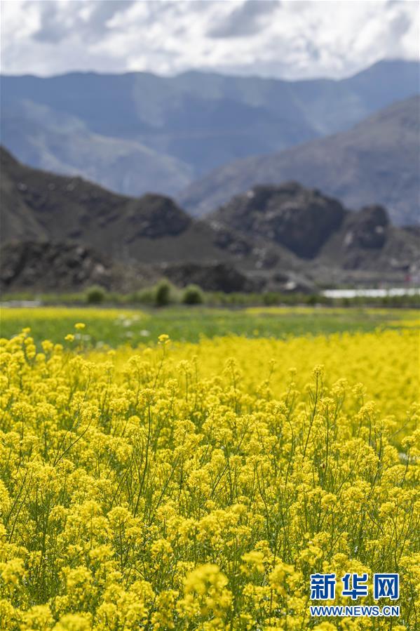 这是位于拉萨市柳梧乡达东村的油菜花田(6月25日摄)。 时下,在位于拉萨河畔的拉萨市柳梧乡达东村,成片的油菜花竞相绽放,金黄色的花海在微风吹拂下涌起波浪,分外迷人。 新华社记者 孙非 摄