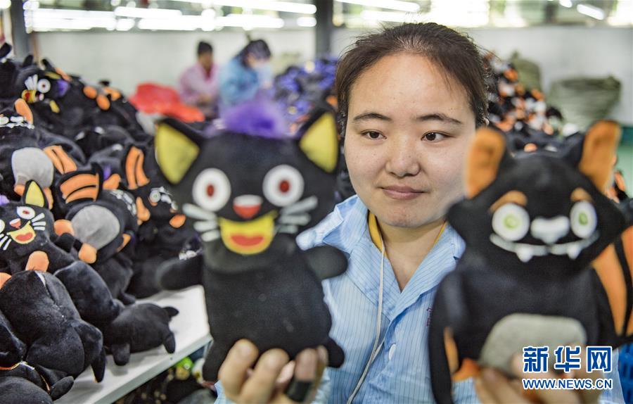 岚皋县民主镇新风村高厚菊在家门口的社区工厂上班(5月12日摄)。2019年初,她一家搬迁到富丽明珠安置小区后,开始在家门口的社区工厂上班,月工资3000多元。新华社记者陶明摄