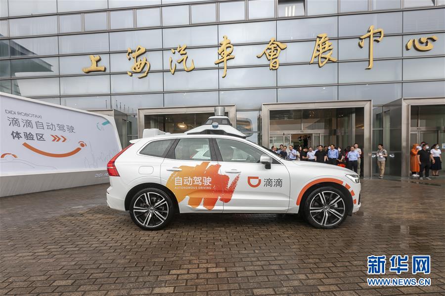 这是6月27日在上海汽车会展中心拍摄的滴滴自动驾驶车辆。 当日,上海启动智能网联汽车规模化示范应用,首批智能网联汽车在滴滴出行App上开放服务,用户在滴滴出行App上报名并通过审核后,可预约体验滴滴自动驾驶。上海智能网联汽车载人示范应用进入规模化阶段。 新华社记者王翔摄