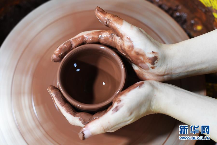 6月27日,游客在安陶小镇体验“荣昌陶”制作。新华社记者 王全超 摄