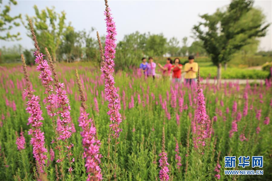 6月27日,市民在迁西县长河带状公园内游览。新华社记者 牟宇 摄