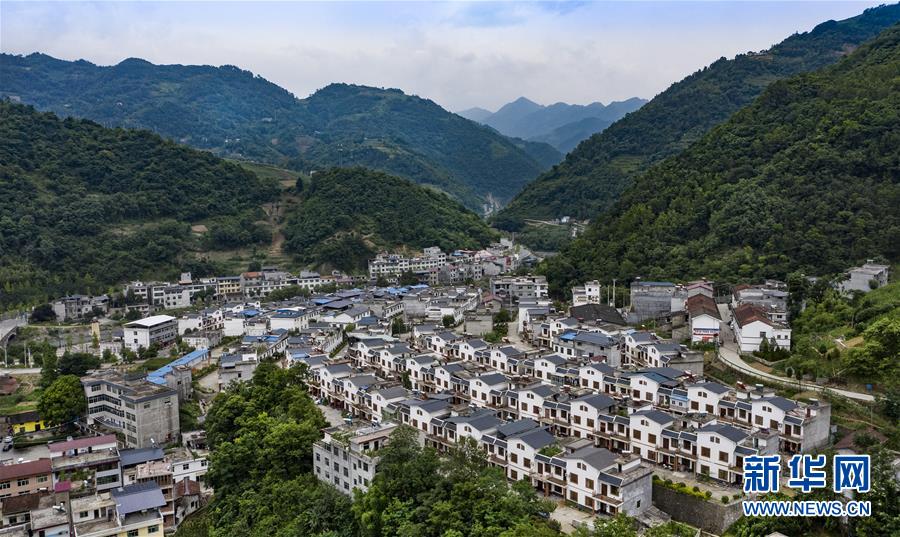 6月26日无人机拍摄的岚皋县民主镇易地扶贫搬迁安置小区。新华社记者陶明摄