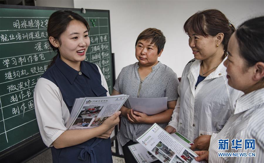 6月26日,岚皋县巧妹子合作社辅导员赵淑敏(左一)在民主镇明珠“睦邻之家”就业培训班上,解答学员的疑难问题。新华社记者陶明摄