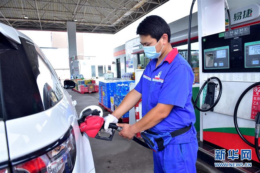 6月28日,河北省石家庄新乐市一个加油站员工给汽车加油。 当日,国家发展改革委发布消息,根据近期国际市场油价变化情况,按照现行成品油价格形成机制,自2020年6月28日24时起,国内汽、柴油价格(标准品)每吨分别提高120元和110元。 新华社发(贾敏杰 摄)