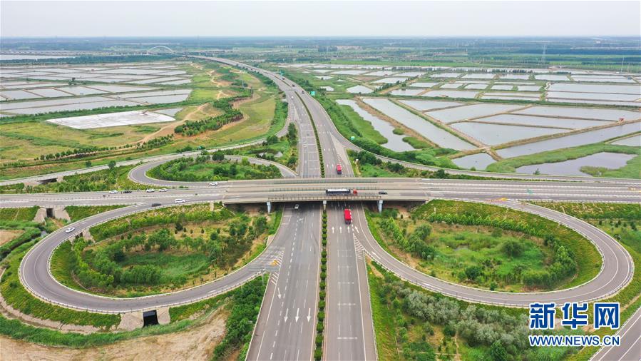 这是6月28日拍摄的唐山至曹妃甸生态廊道(无人机照片)。 近日,河北省唐山市唐山至曹妃甸生态廊道工程全线竣工。该生态廊道主要位于承唐高速及唐曹高速沿线,总长度约70公里,工程在整体风貌把握上充分尊重现状林、村庄、鱼塘、稻田、湿地等生态本底条件,因地制宜设计,成为一道亮丽的风景线。 新华社记者 牟宇 摄