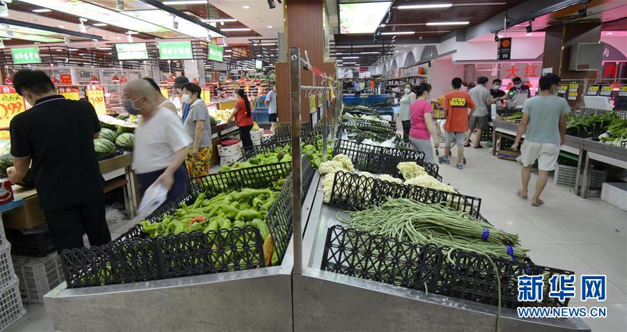 6月28日,丰台区宛平城地区的居民在超市中选购可溯源的蔬菜副食。 新华社记者 李欣 摄