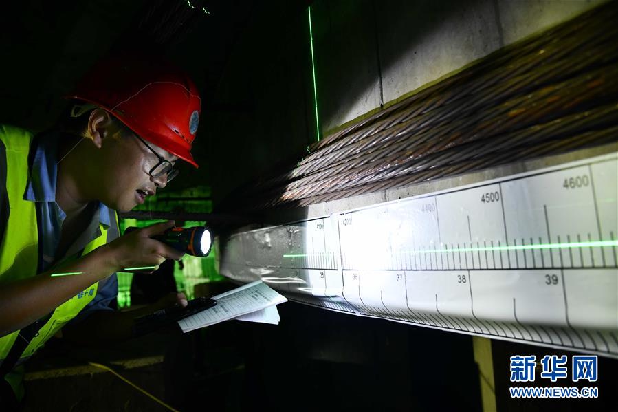 6月28日,在新台高速公路山东平邑段,工作人员对跨兖石铁路转体桥实施转体作业。 新华社记者 郭绪雷 摄