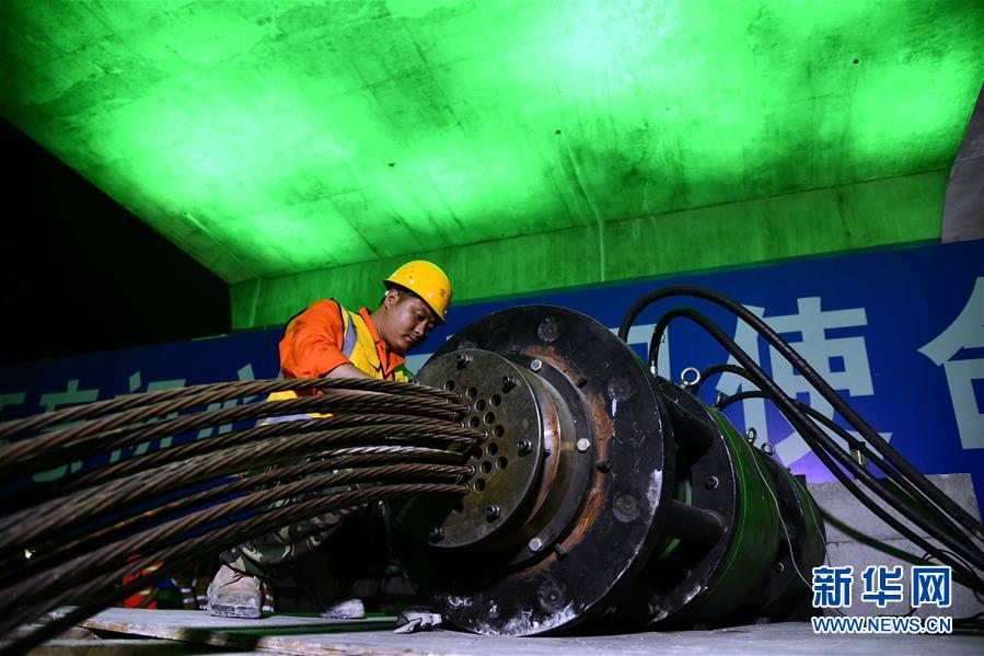 6月28日,在新台高速公路山东平邑段,工作人员对跨兖石铁路转体桥实施转体作业。 新华社记者 郭绪雷 摄