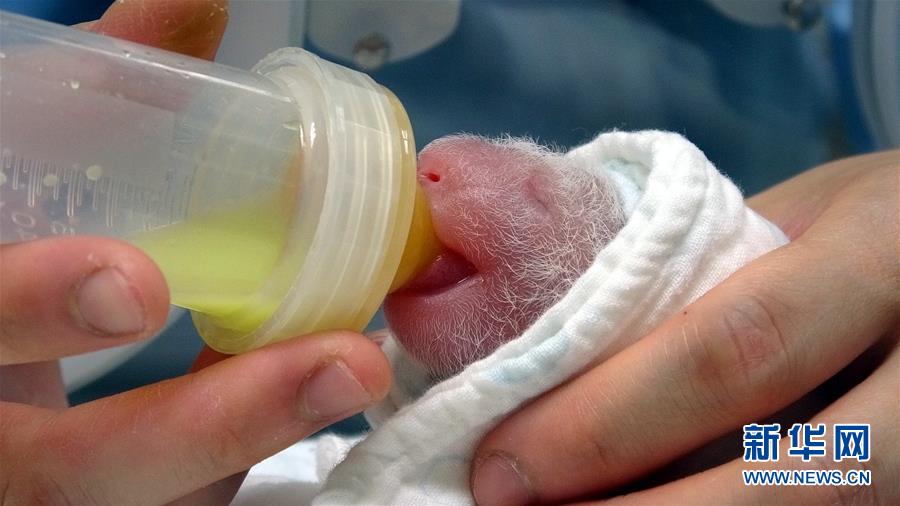 保育员喂大熊猫宝宝喝初乳(6月28日摄)。 大陆赠台大熊猫“圆圆”6月28日下午1点53分顺利产下幼崽,喜获“二胎”。幼崽性别还要等一段时间才能确认。 大熊猫“团团”和“圆圆”2008年12月赴台,次年农历大年初一首次与台湾民众见面。它们在2013年7月6日生下女儿“圆仔”。 新华社发(台北市立动物园供图)