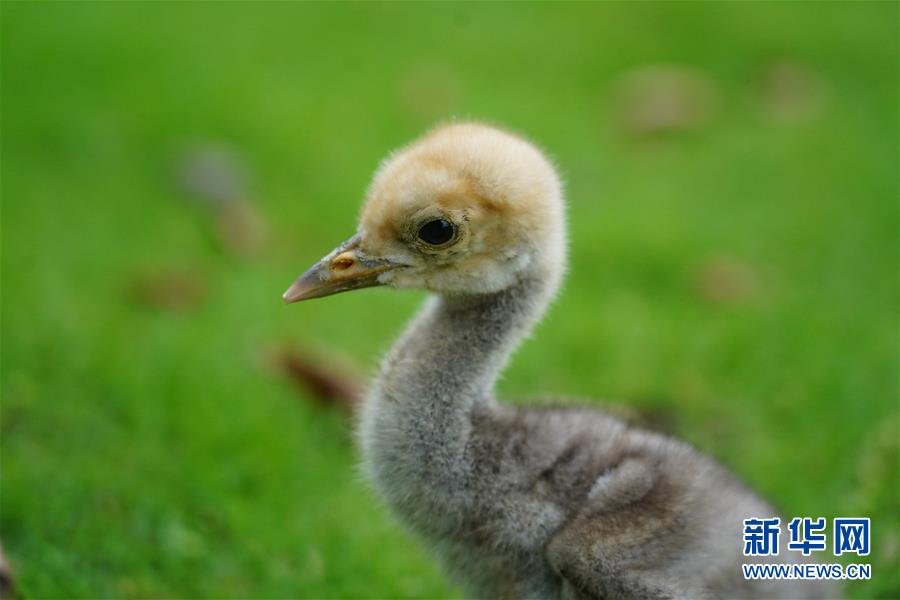 6月29日拍摄的蓑羽鹤宝宝。新华社记者 周密 摄
