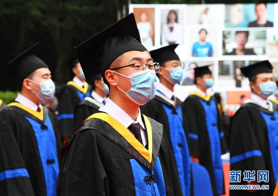 6月29日,北京航空航天大学2020届本科毕业生在毕业典礼上。 当日,北京航空航天大学举行2020届本科生毕业典礼。由于疫情防控需要,今年的典礼在北京航空航天大学主楼广场举行,仅少量在校本科毕业生现场参加,更多本科毕业生通过线上直播参与毕业典礼。 新华社记者 任超 摄