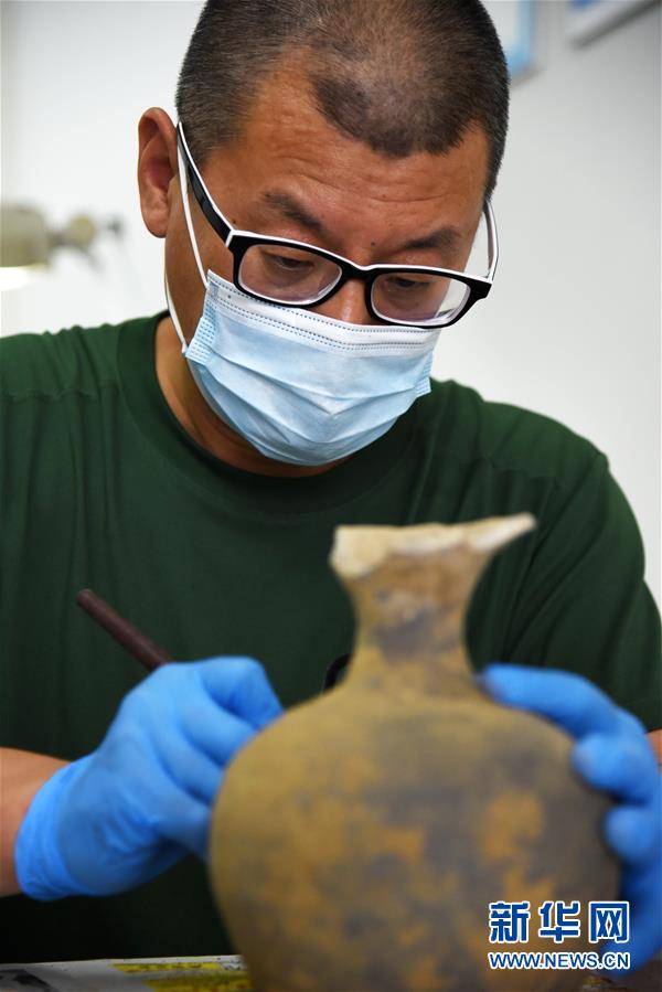 6月29日,济南市考古研究所专家在修复小清河复航工程合庄墓地考古发掘出土的文物。 日前,山东小清河复航工程合庄墓地考古发掘出土文物进入修复和研究过程,济南市考古研究所专家在精细修复文物的基础上对其进行深入研究。 新华社记者 王凯 摄