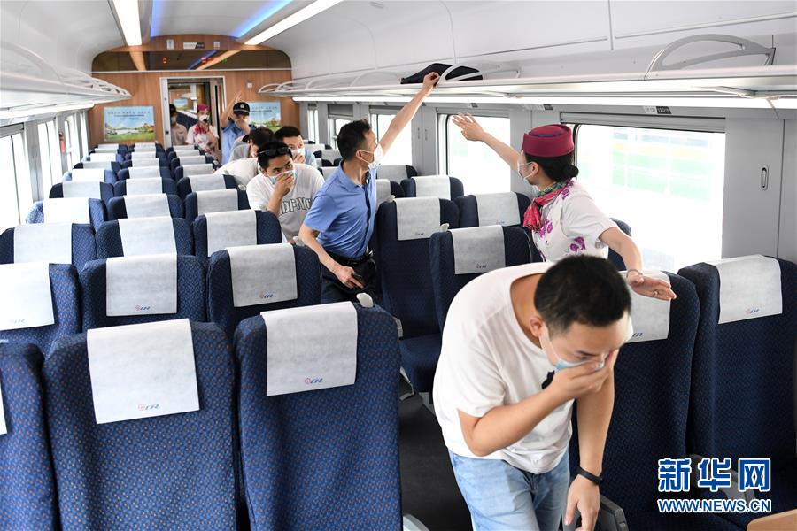 6月29日,重庆铁路职工在消防应急演练活动上进行疏散演练。 暑运临近,重庆铁路公安处消防支队、重庆客运段动车三队、重庆车辆段重庆北运用车间在重庆北客整所联合开展消防应急演练活动,增强铁路职工消防安全意识,提高职工应对安全事故和突发事件应急处置能力。 新华社记者 唐奕 摄