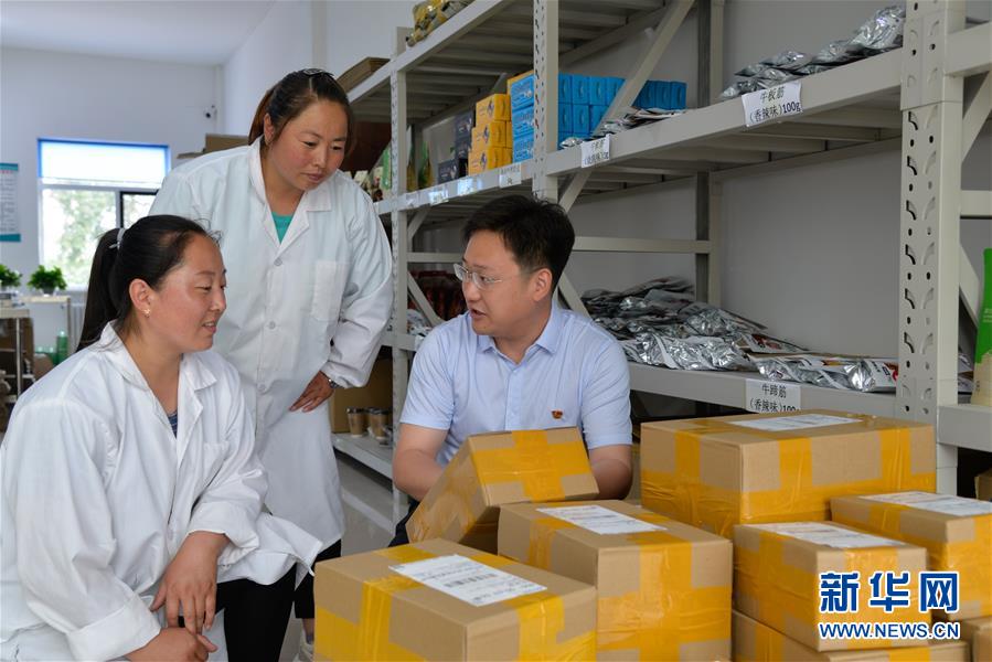 6月29日,张骅(右)在位于远新村的北京林业大学援建扶贫车间的仓储物流车间了解发货情况。 新华社记者 徐钦 摄