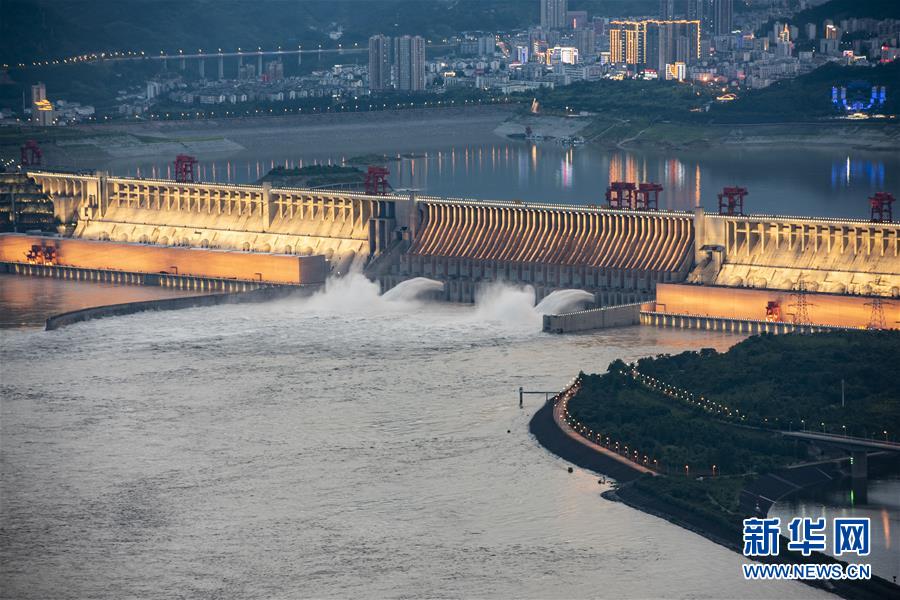 6月29日,三峡枢纽开启泄洪孔泄洪。 受长江中上游强降雨影响,进入三峡水库的水量持续增多。为腾出一定库容迎接近期可能到来的洪水,三峡枢纽于6月29日上午开启两个泄洪孔,加大下泄流量。这是三峡枢纽今年首次泄洪。 28日14时,三峡水库入库流量达4万立方米/秒,是27日14时的两倍。为应对此轮来水,长江防总要求将三峡水库下泄流量上调至日均3.5万立方米/秒。 新华社发(郑家裕 摄)