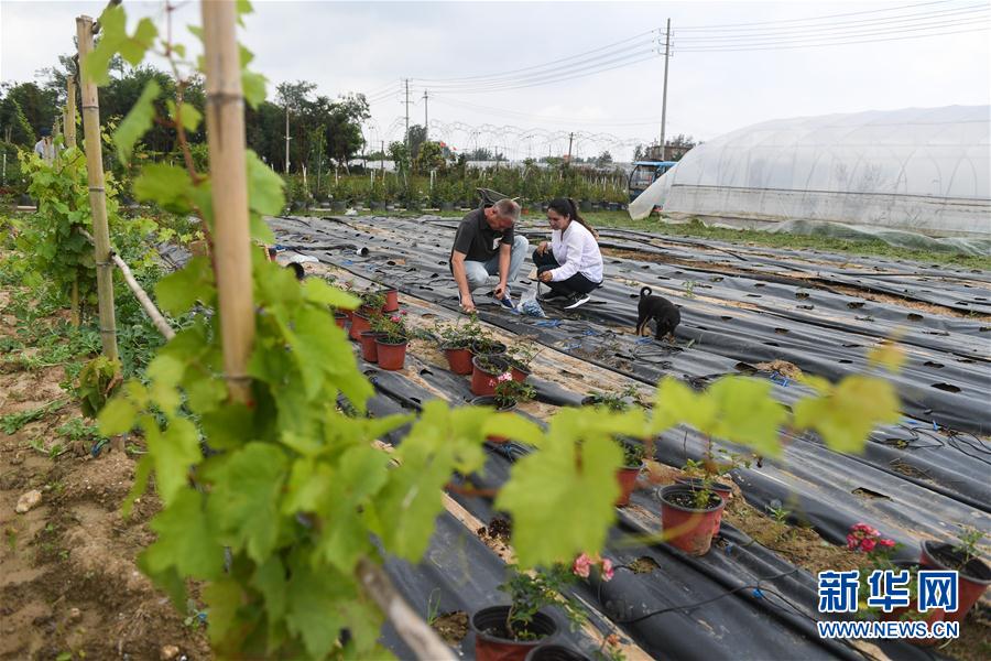 在沭阳县扎下镇,米尔扎提·吾马尔和妻子早然木·吐尔逊在月季种植基地安装灌溉设备(6月22日摄)。 在“花木之乡”江苏沭阳县,来自新疆伽师县的米尔扎提·吾马尔和妻子早然木·吐尔逊已经“扎根取经”一年有余,他们在扎下镇流转了20多亩土地,种植月季花,学习现代农业技术。 今年44岁的米尔扎提是名老资历的花商,22岁便在家乡开过花店,南下广州做过多年的花卉批发生意。6年前他慕名来到沭阳进货,从此与这片土地结下不解之缘。“那几年,我每年春秋两季都会到这里进货,一次呆上半个月。”米尔扎提被沭阳先进的花木种植技术吸引,决定留下。家乡许多人想通过种月季脱贫致富,需要这里的技术。2019年初,在当地政府的帮助和支持下,米尔扎提和当地合伙人一起开始了全新的事业。 学技术学管理,打理月季园,线上直播“带货”…… 米尔扎提夫妇每天忙忙碌碌,生意也小有所成。他们将扎下镇的月季花苗卖到新疆各地,也将技术通过直播平台、公众号传授给乡亲。“一人富不算富,大家富才是真的富。”一些乡亲甚至跑到扎下镇来,跟着米尔扎提学种月季。米尔扎提介绍,他前后一共带动了新疆500多户农户种植月季,其中有100多户贫困户,有一些已经脱贫。对来学技术的贫困户,米尔扎提为他们报销往返路费,包吃包住之外还支付生活费,学成了可以留下来,返回新疆的,也提供苗木、资金等帮助。 “我的家乡在‘一带一路’上,希望事业能做得越来越大,将来把月季卖到欧洲去。”谈到未来,米尔扎提信心十足。 新华社记者 季春鹏 摄