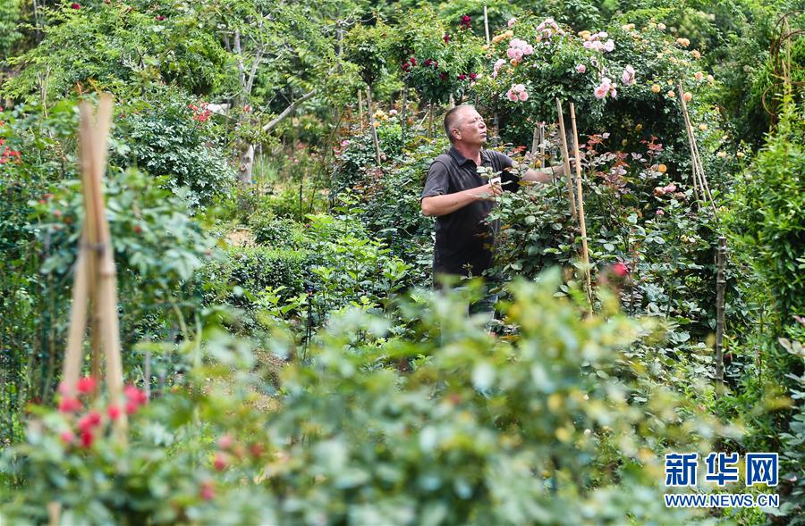 在沭阳县扎下镇,米尔扎提·吾马尔在自己的月季种植基地打理月季(6月22日摄)。 在“花木之乡”江苏沭阳县,来自新疆伽师县的米尔扎提·吾马尔和妻子早然木·吐尔逊已经“扎根取经”一年有余,他们在扎下镇流转了20多亩土地,种植月季花,学习现代农业技术。 今年44岁的米尔扎提是名老资历的花商,22岁便在家乡开过花店,南下广州做过多年的花卉批发生意。6年前他慕名来到沭阳进货,从此与这片土地结下不解之缘。“那几年,我每年春秋两季都会到这里进货,一次呆上半个月。”米尔扎提被沭阳先进的花木种植技术吸引,决定留下。家乡许多人想通过种月季脱贫致富,需要这里的技术。2019年初,在当地政府的帮助和支持下,米尔扎提和当地合伙人一起开始了全新的事业。 学技术学管理,打理月季园,线上直播“带货”…… 米尔扎提夫妇每天忙忙碌碌,生意也小有所成。他们将扎下镇的月季花苗卖到新疆各地,也将技术通过直播平台、公众号传授给乡亲。“一人富不算富,大家富才是真的富。”一些乡亲甚至跑到扎下镇来,跟着米尔扎提学种月季。米尔扎提介绍,他前后一共带动了新疆500多户农户种植月季,其中有100多户贫困户,有一些已经脱贫。对来学技术的贫困户,米尔扎提为他们报销往返路费,包吃包住之外还支付生活费,学成了可以留下来,返回新疆的,也提供苗木、资金等帮助。 “我的家乡在‘一带一路’上,希望事业能做得越来越大,将来把月季卖到欧洲去。”谈到未来,米尔扎提信心十足。 新华社记者 季春鹏 摄