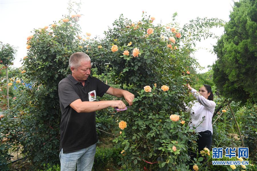 在沭阳县扎下镇,米尔扎提·吾马尔和妻子早然木·吐尔逊在自己的月季种植基地打理月季(6月22日摄)。 在“花木之乡”江苏沭阳县,来自新疆伽师县的米尔扎提·吾马尔和妻子早然木·吐尔逊已经“扎根取经”一年有余,他们在扎下镇流转了20多亩土地,种植月季花,学习现代农业技术。 今年44岁的米尔扎提是名老资历的花商,22岁便在家乡开过花店,南下广州做过多年的花卉批发生意。6年前他慕名来到沭阳进货,从此与这片土地结下不解之缘。“那几年,我每年春秋两季都会到这里进货,一次呆上半个月。”米尔扎提被沭阳先进的花木种植技术吸引,决定留下。家乡许多人想通过种月季脱贫致富,需要这里的技术。2019年初,在当地政府的帮助和支持下,米尔扎提和当地合伙人一起开始了全新的事业。 学技术学管理,打理月季园,线上直播“带货”…… 米尔扎提夫妇每天忙忙碌碌,生意也小有所成。他们将扎下镇的月季花苗卖到新疆各地,也将技术通过直播平台、公众号传授给乡亲。“一人富不算富,大家富才是真的富。”一些乡亲甚至跑到扎下镇来,跟着米尔扎提学种月季。米尔扎提介绍,他前后一共带动了新疆500多户农户种植月季,其中有100多户贫困户,有一些已经脱贫。对来学技术的贫困户,米尔扎提为他们报销往返路费,包吃包住之外还支付生活费,学成了可以留下来,返回新疆的,也提供苗木、资金等帮助。 “我的家乡在‘一带一路’上,希望事业能做得越来越大,将来把月季卖到欧洲去。”谈到未来,米尔扎提信心十足。 新华社记者 季春鹏 摄