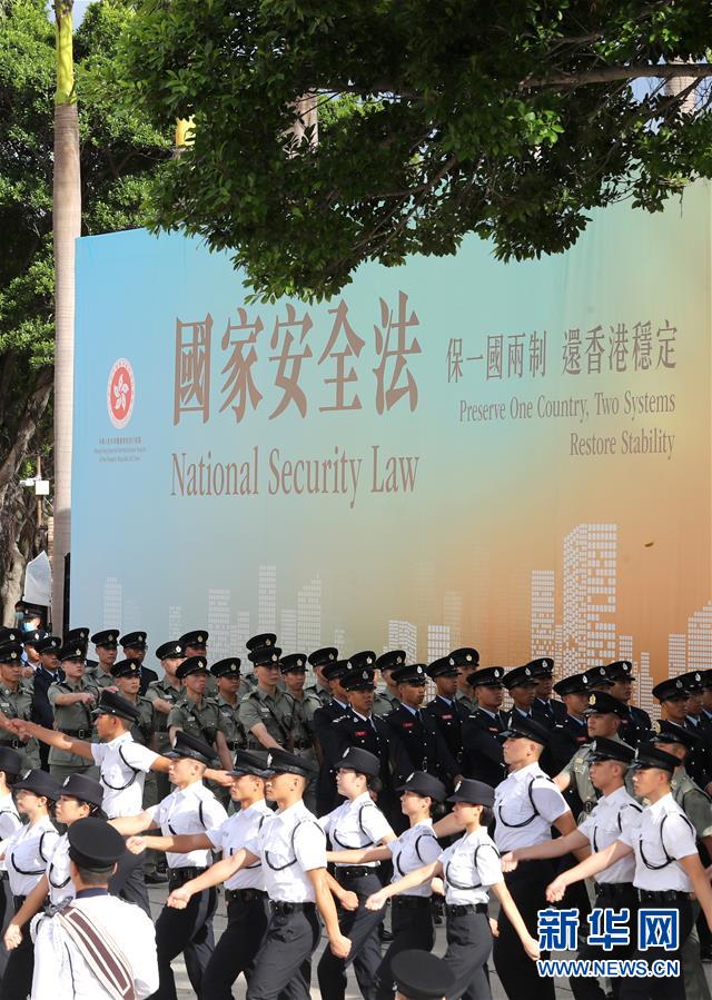 7月1日,香港特区政府在湾仔金紫荆广场举行升旗仪式,庆祝香港回归祖国23周年。 新华社记者 李钢 摄