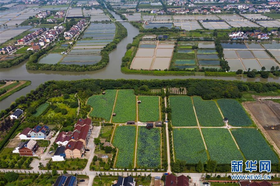 7月1日拍摄的马鸣村百亩荷塘(无人机照片)。新华社记者 徐昱 摄