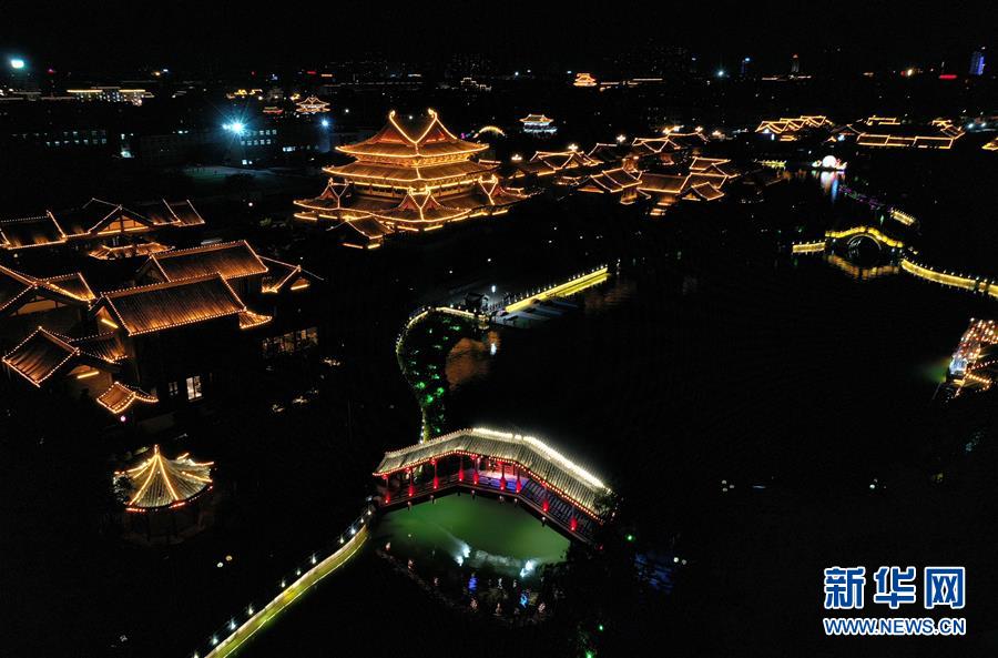 这是开封御河夜景(无人机照片,6月1日摄)。新华社记者 李安 摄