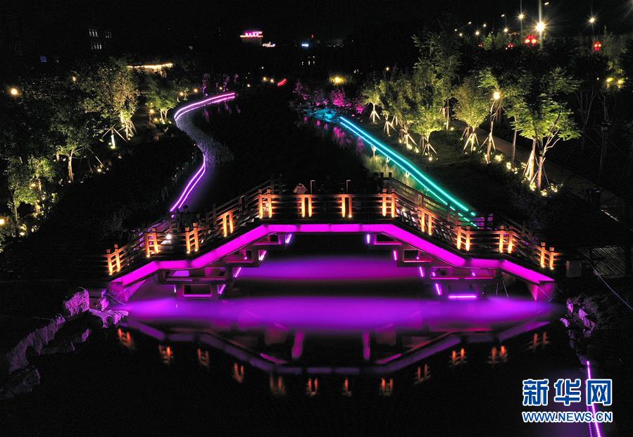 这是河南省开封市东护城河夜景(无人机照片,6月1日摄)。新华社记者 李安 摄