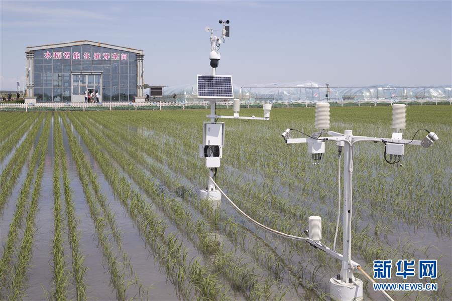 在黑龙江省富锦市东北水田现代农机专业合作社稻田里的专业设备(6月12日摄)。新华社发(张涛 摄)