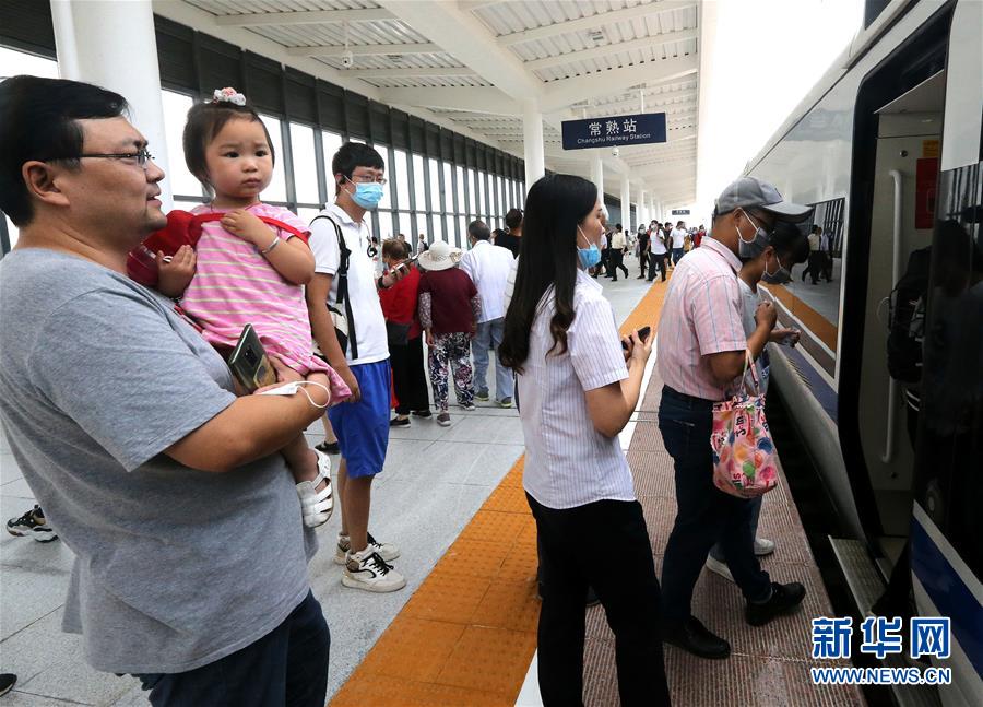 7月1日,在常熟站,旅客登上C3836次列车。 当日,沪苏通铁路开通运营,上海至南通最快旅行时间压缩至1小时6分钟。沪苏通铁路是国家“八纵八横”高铁网沿海通道,也是京沪第二通道的重要组成部分,全长143公里,设计时速200公里。 新华社记者 陈飞 摄