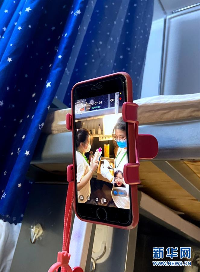 7月1日,在北理工学生宿舍,辅导员通过手机视频方式,核对毕业生的个人物品。 6月29日起,北京理工大学教职员工开始为2020届6000多名需要打包的毕业生集中进行行李打包、邮寄和留置物品存放工作。经过提前与毕业生“一对一”沟通,老师们耐心细致地通过手机“直播”打包行李的全过程,与每一个同学认真核对其个人物品,细心收纳摆放、整理密封、搬运寄送,让不能返校的毕业生们安心、放心。 新华社记者 魏梦佳 摄