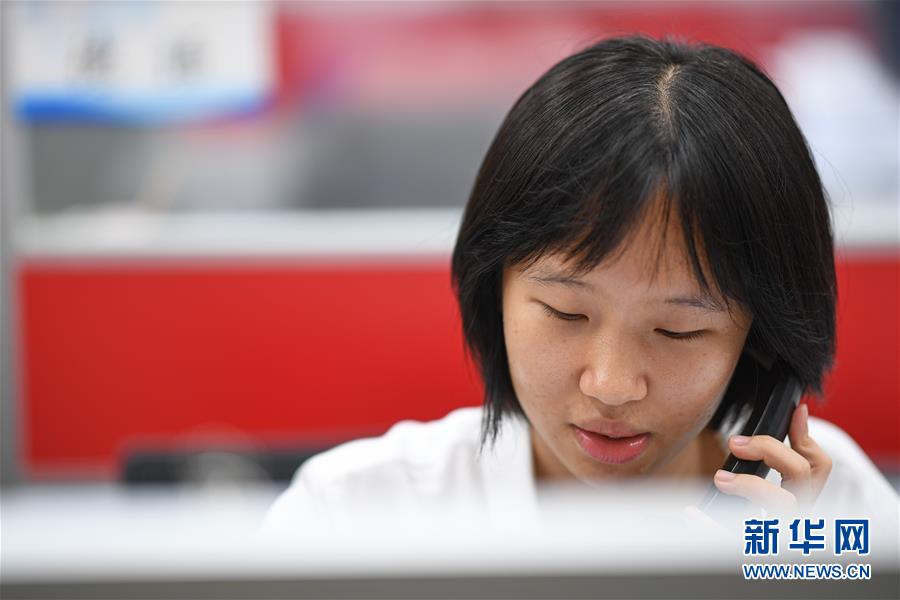 工作人员在位于海口的海南国际经济发展局接听来自世界各地的电话咨询(6月22日摄)。新华社记者 蒲晓旭 摄