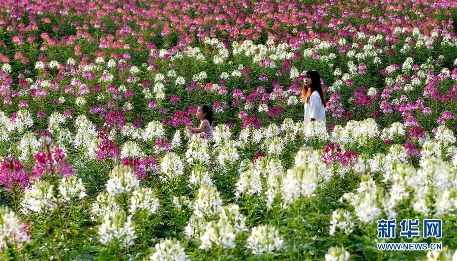 7月1日,市民在位于留坝县城的金水湾花海游玩。 近日,陕西省汉中市留坝县金水湾花海的各类鲜花次第绽放,绚丽缤纷。 新华社记者 刘潇 摄