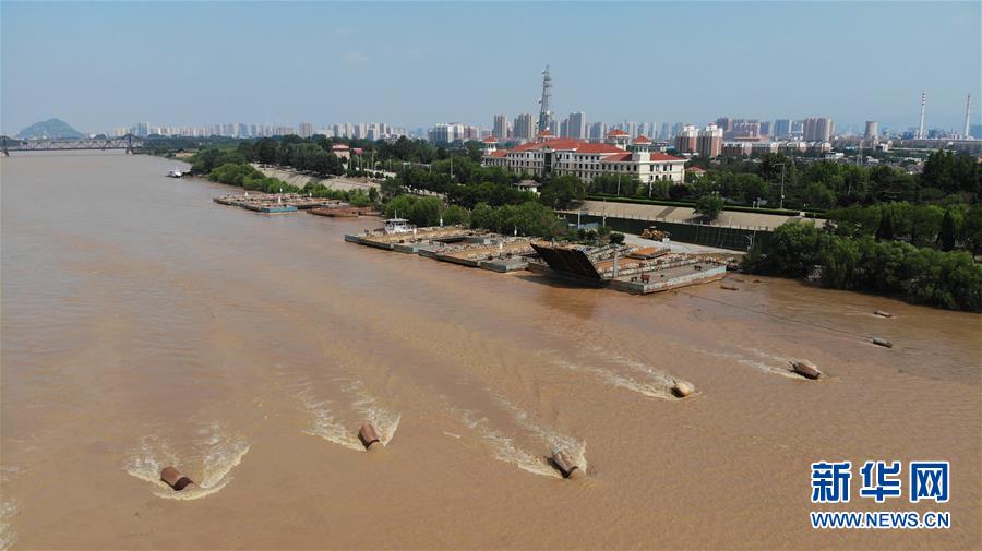 图为6月30日拍摄的黄河济南段(无人机照片)。 7月2日,记者从黄河水利委员会山东黄河河务局了解到,受上游水库腾库下泄影响,黄河大流量洪水目前正流经山东省。6月30日上午7时,山东东明县高村水文站出现本次大流量过程峰值5120立方米每秒,此后大流量水头继续在山东省河道演进。预计黄河山东段大流量过程将持续到7月10日左右。 新华社记者 王凯 摄