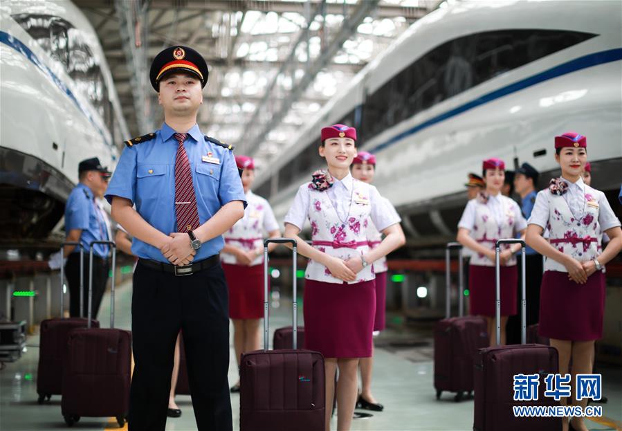 7月3日,担任首发列车值乘工作的班组人员在贵阳亮相。 当日,担任新建贵州安顺至六盘水铁路首发列车值乘工作的司机、乘务员、随车机械师等在贵阳亮相。安六铁路开通后,来自相关铁路单位的20余名司机、100余名乘务员等工作人员将为安六铁路列车运行服务。据了解,安六铁路将于近日正式开通运营。 新华社记者 刘续 摄