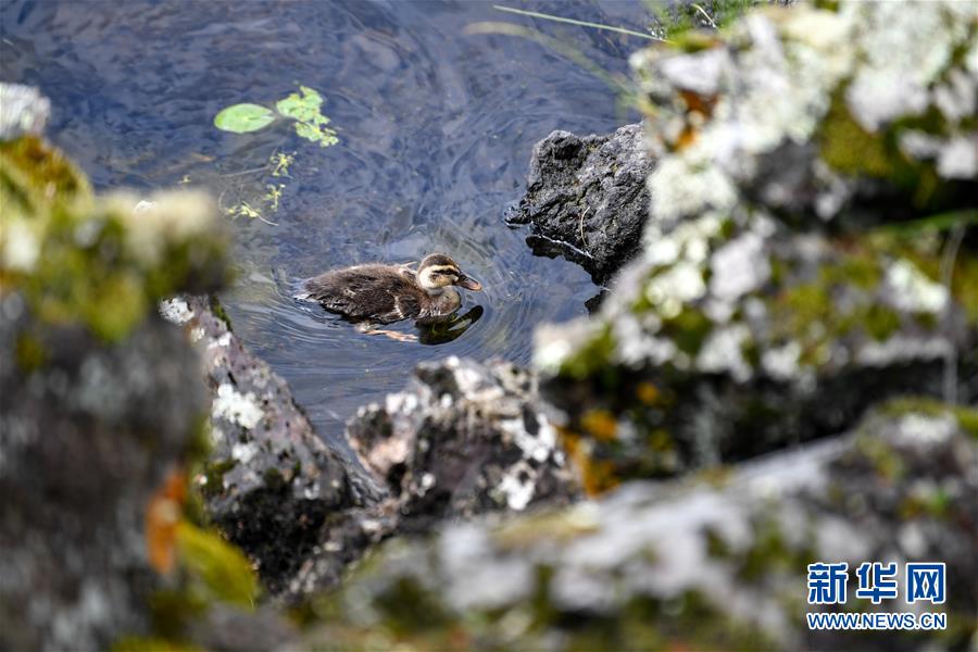 7月3日,野鸭在阿尔山国家森林公园乌苏浪子湖中游弋。 夏日时节,内蒙古兴安盟阿尔山市的阿尔山国家森林公园内树木郁郁葱葱,景色宜人。 新华社记者 贝赫 摄