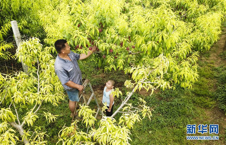 7月3日,游客在河北省大厂回族自治县东杨辛庄村采摘鲜桃(无人机照片)。 近日,河北省大厂回族自治县陈府镇东杨辛庄村千亩采摘园迎来收获季。近年来,该村积极引导农民因地制宜发展以特色种植、生态采摘、旅游观光为亮点的休闲观光农业,打造千亩采摘园,成为远近闻名的种植专业村,带动农民增收。 新华社记者李晓果摄