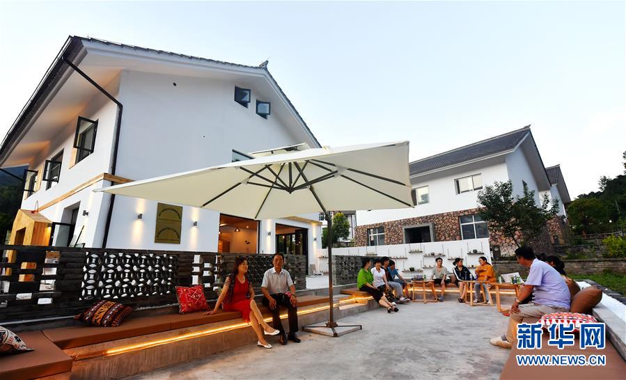 游客在陕西留坝县紫柏街道山坡上民宿区休闲(7月2日摄)。新华社记者 刘潇 摄