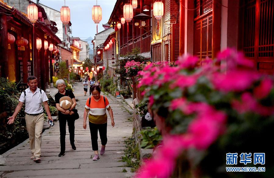 游客在陕西留坝县城老街上游玩,这条街上分布着多家民宿(7月3日摄)。新华社记者 刘潇 摄