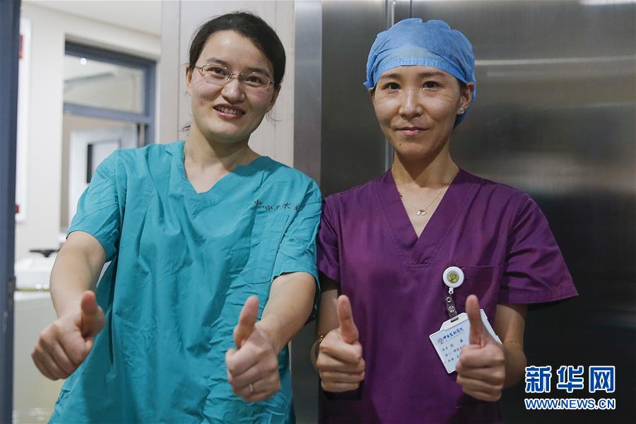 7月3日,中日友好医院检验科新冠核酸检测实验室的闫克芹(左)和张鑫在短暂午休时脱下了防护服。新华社记者 张玉薇 摄