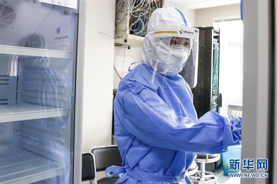 7月3日,中日友好医院检验科新冠核酸检测实验室的检验人员张鑫在实验室内查看样本。新华社记者 张玉薇 摄