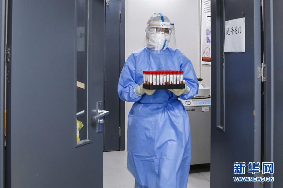7月3日,中日友好医院检验科新冠核酸检测实验室的检验人员闫克芹运送经过灭活的样本。新华社记者 张玉薇 摄