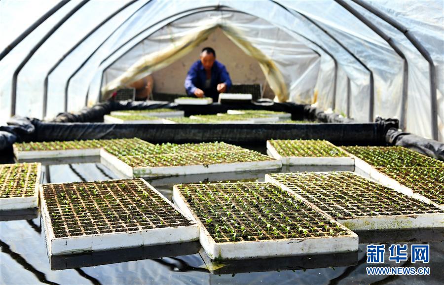 陕西太白县咀头镇塘口村的村民通过“漂浮育苗”的方式进行蔬菜育苗(7月4日摄)。 新华社记者 刘潇 摄