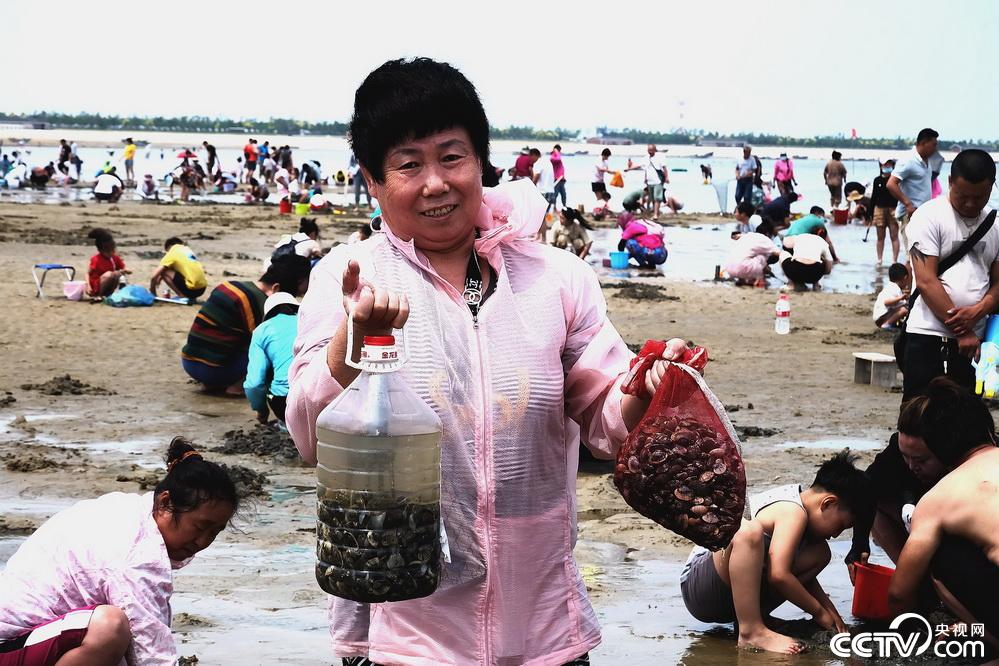 7月5日,恰逢农历五月十五,辽宁省营口市鲅鱼圈海湾,大批游客趁着退潮,在裸露的滩涂上,摸鱼、抓蟹、捡蚬子体验赶海的乐趣。 吴胡荼 摄