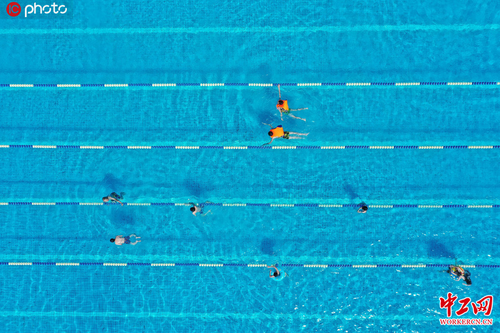 2020年7月5日,市民在永州市道县水上乐园游泳池里游泳,在水中享清凉。何红福/IC photo