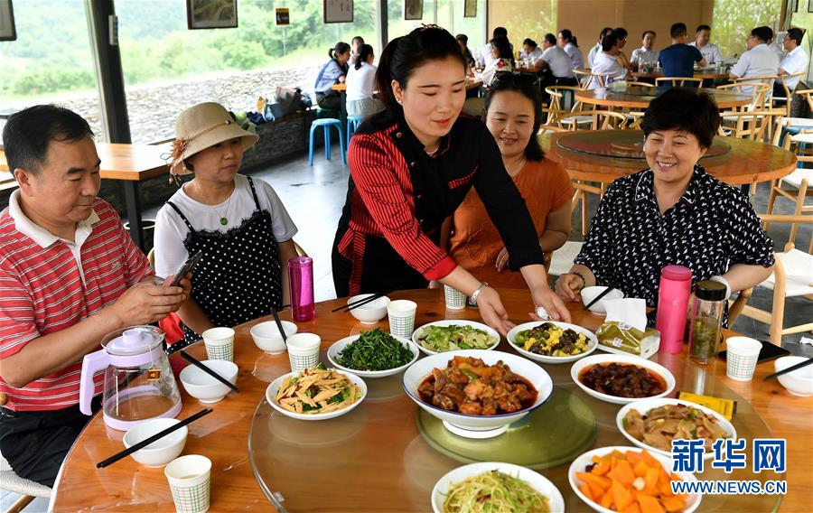 7月5日,游客在陕西太白县咀头镇白云村的一家农家乐里就餐。新华社记者 刘潇 摄