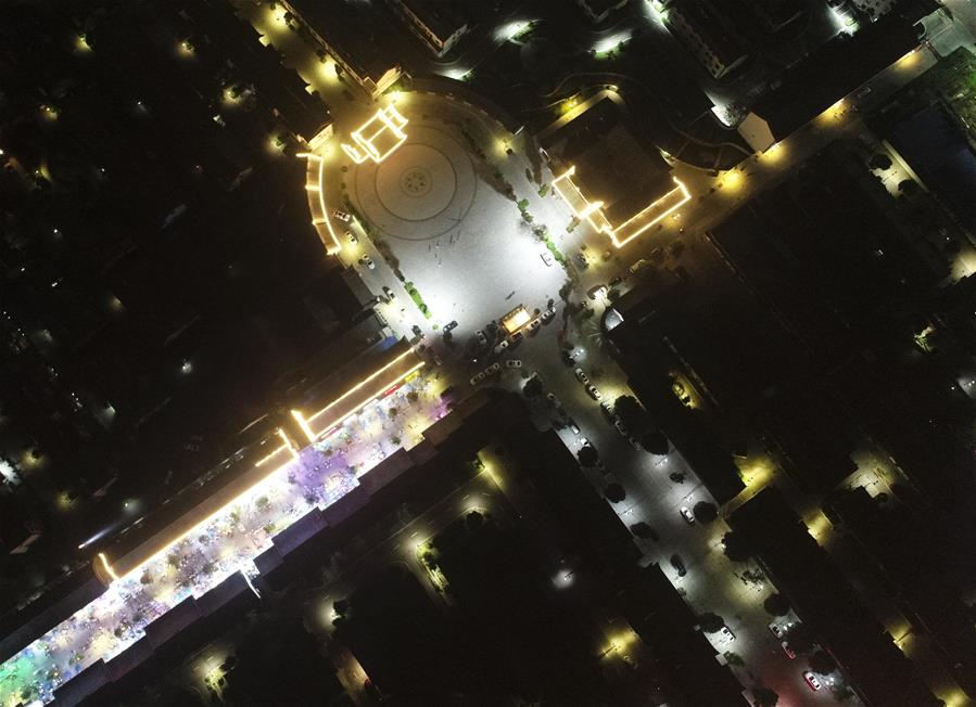 7月4日拍摄的江苏省金湖县尧帝古城小吃街(无人机照片)。 江苏省淮安市金湖县位于江苏省中部,境内白马湖、宝应湖、高邮湖三面环绕。近年来,当地发挥其独特的地理区位优势,打造出金湖龙虾广场、尧帝古城小吃街、荷花广场便民服务点等一批特色区域,丰富当地群众夜生活。 新华社发(汤德宏 摄)