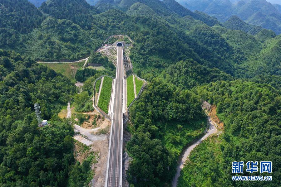 7月6日拍摄的安六铁路彭家冲一号大桥附近的景观(无人机照片)。 当日,新建贵州安六铁路(安顺至六盘水)联调联试工作进入收尾阶段,开通前的各项准备工作已基本就绪。安六铁路线路全长约125公里,设计时速250公里,为国家I级双线客运专线。建成投用后,贵阳至六盘水的铁路旅行时间可从现在的3.5小时缩短为1小时左右,贵州省六盘水市将全面接入全国高铁网。 新华社记者 刘续 摄